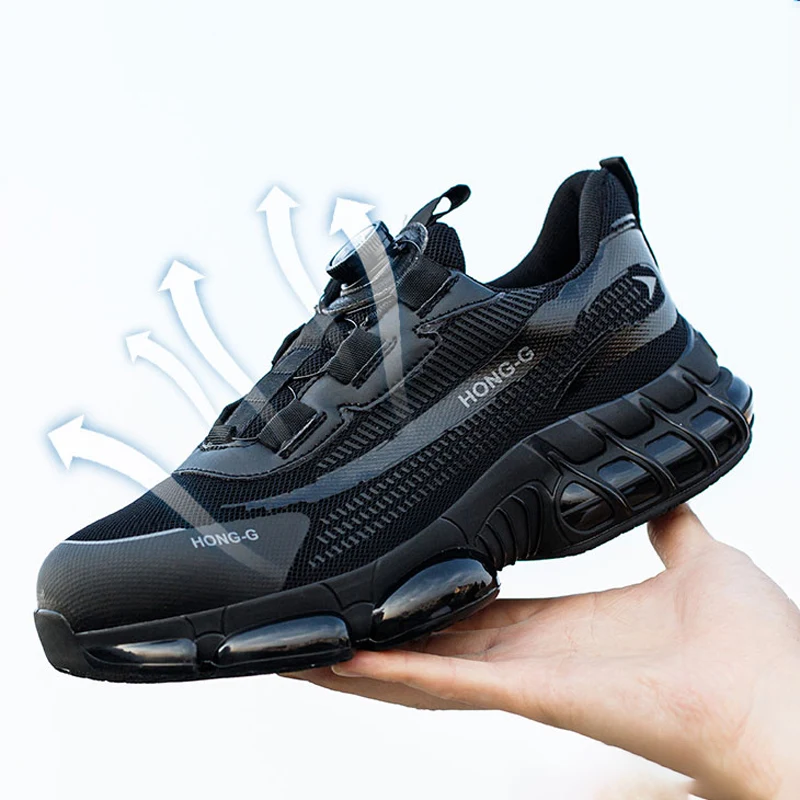 Rotating Button Safety Shoes Men Steel Toe Sneaker Air Cushion Work Shoes Man Puncture Proof Work Safety Boots Protective Shoes
