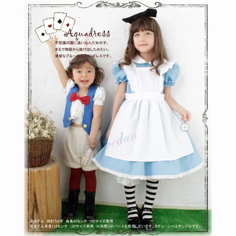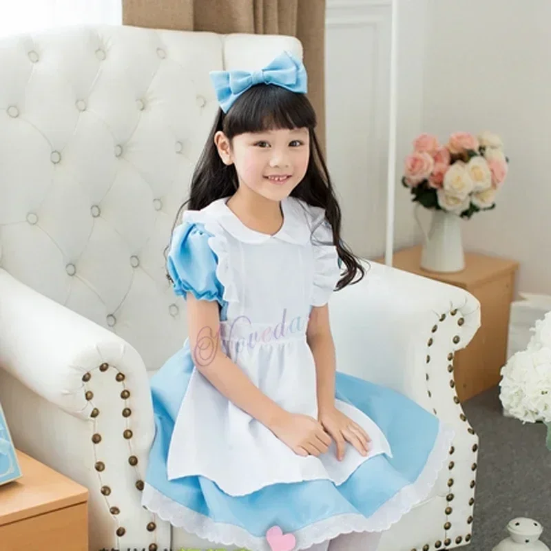 Halloween Baby Girls Kids Anime Alice Adventures Blue Fancy Party Dress Alice Dream Child Lolita Sissy Maid Cosplay Costume