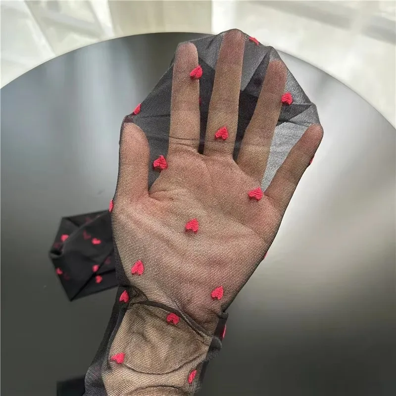 Thin Red Stockings Woman Heart-shaped Dots Pantyhose Breathable Comfortable Long Black Stockings for Women