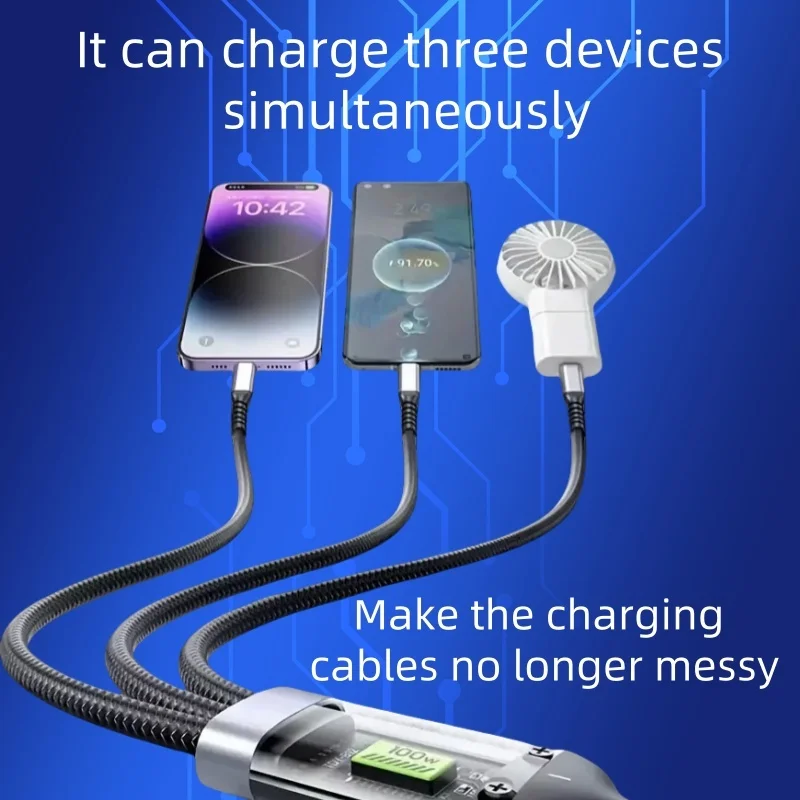 100W LED 3 In 1 Digital Display USB cable Type C Usb Micro For Iphone Samsung Huawei Xiaomi Multi Port Multiple Charging Wire