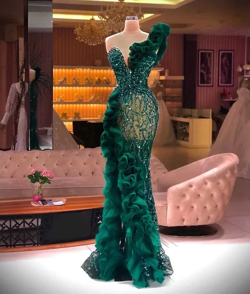 ALI shop - search results ... ... Luxury Beaded Appliques Mermaid Evening Dresses Elegant Side Split Ruffles Tulle Prom Dress Glitter Sequins Formal Party Gowns ::: 2021 ::: :::