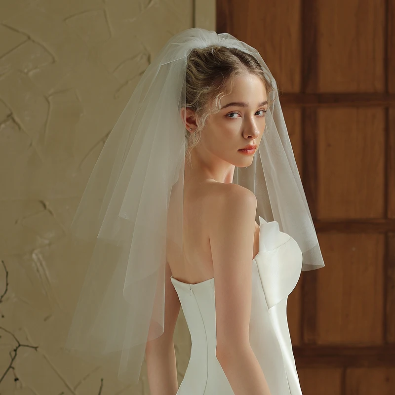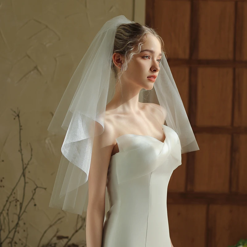 V378 Short White Two layer Soft Tulle Wedding Veil for Bridal Handmade Bride to Be Headdress Veil with Hair Comb