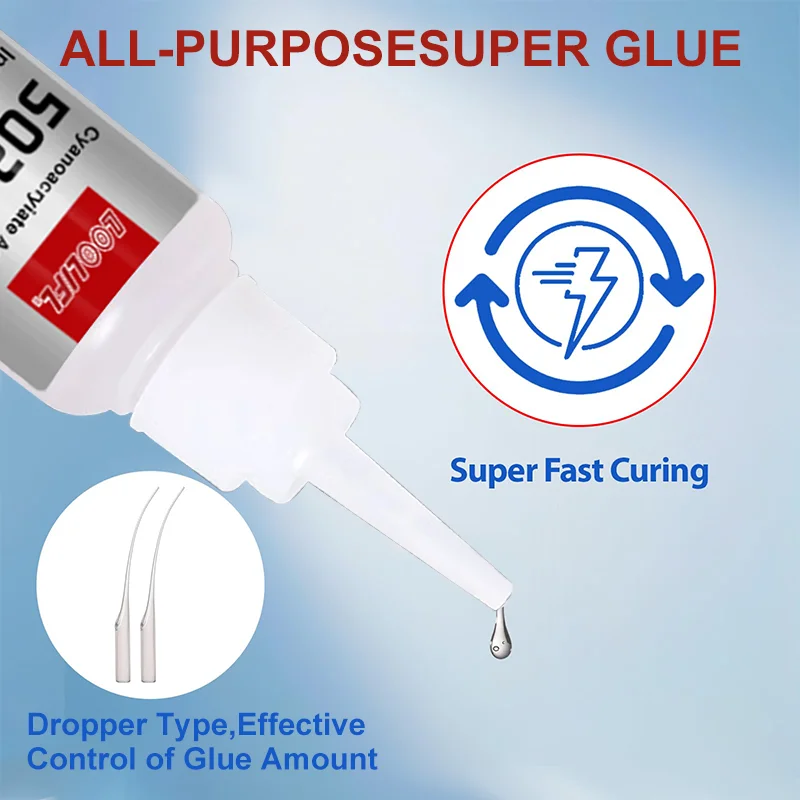 LOOLIFL 502 Super Glue Instant Quick-drying Cyanoacrylate Adhesive Leather Rubber Glass Wood Metal Strong Bond Liquid Glue Tool