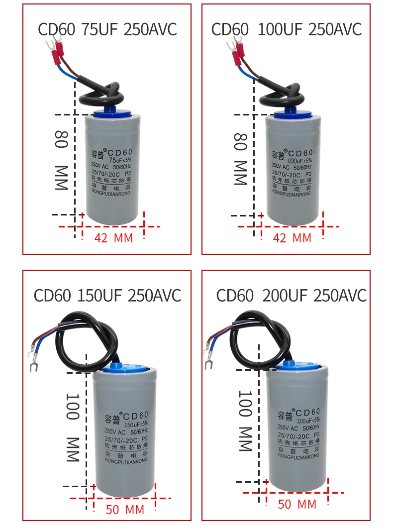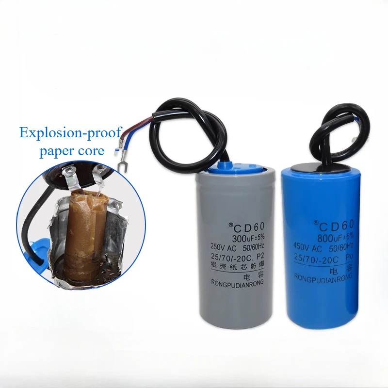 CD60 Motor Water Pump Starting Capacitor 250V 450V AC 50UF 75UF 100UF 150UF 200UF 250UF 300UF 350UF 400UF 500UF 600UF 800UF