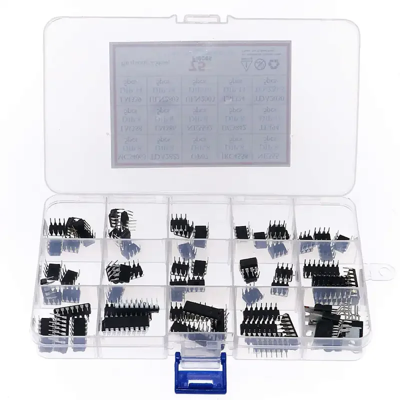 75pcs 15Values DIP IC Assorted kit set LM358 LM386 ULN2003 LM324 NE555 MC34063 TDA2822 JRC4558 OP07 TDA2030 ULN2803 LM339 NE5532