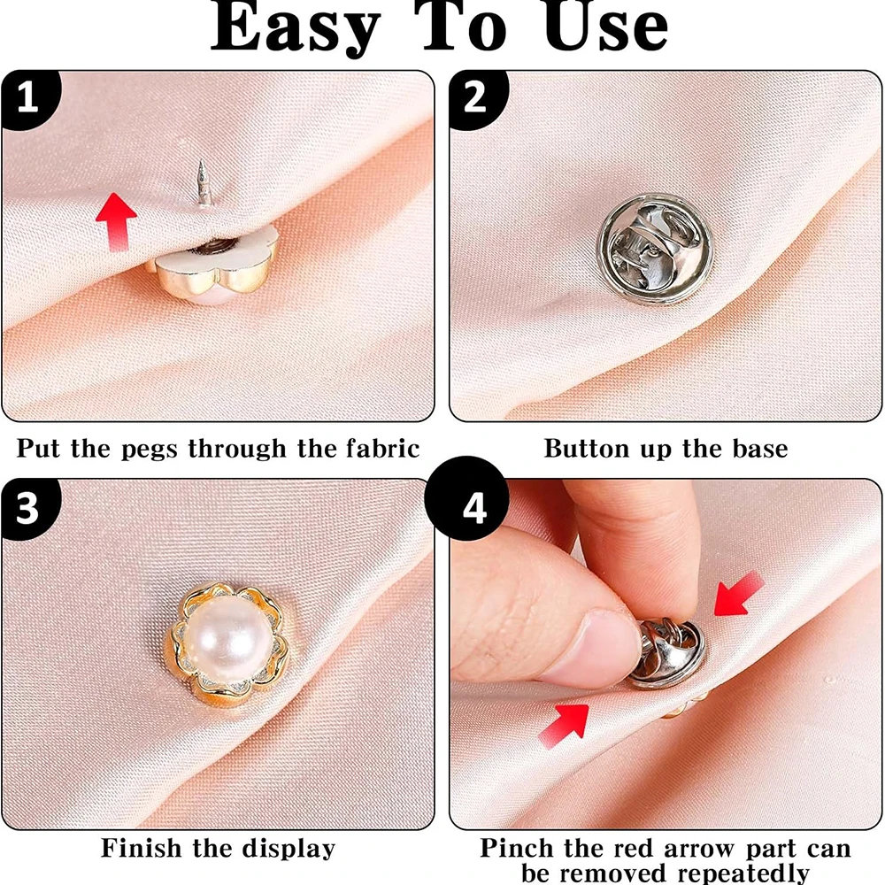 30PCS Pearl Brooch Buttons No Sew Removable Rhinestone Brooch Pins Replacement Safety Button For Clothing Shirt Dress Sweaters