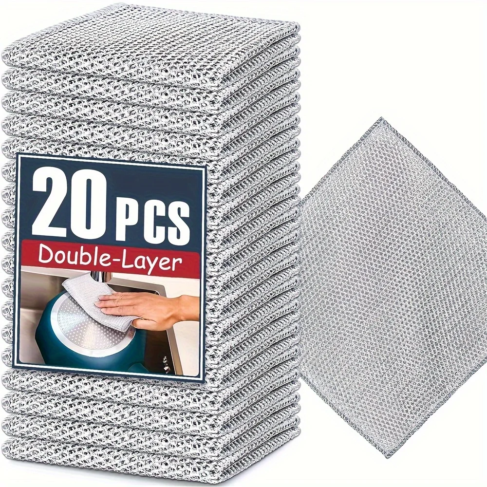 20-5pcs Thickened Steel Wire Cleaning Cloth Non-Scratch Double-layer Iron Microfiber Mesh Dishrag Washing Pot Rags Kitchen Towel