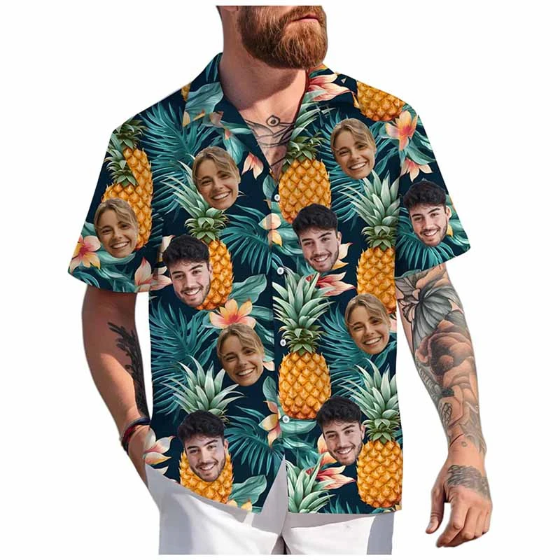 Custom Face Hawaiian Shirt Uni Funny Personalized 3D Printed Button Shirts 2025 Beach Short Sleeves Lapel Shirts DIY Blouses