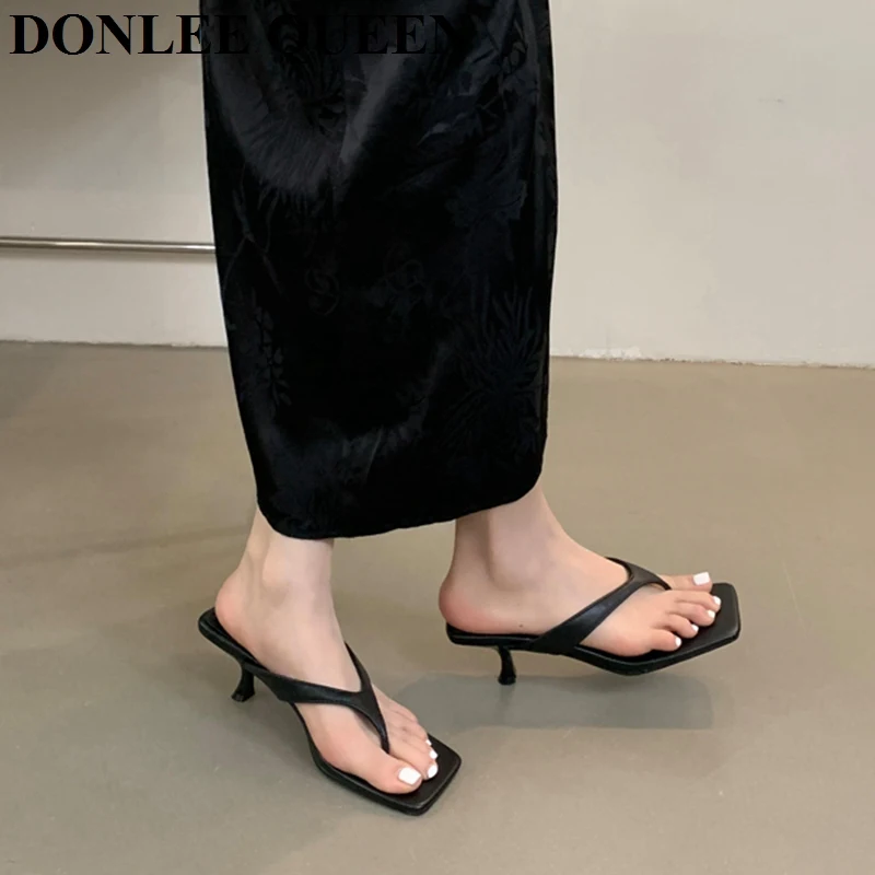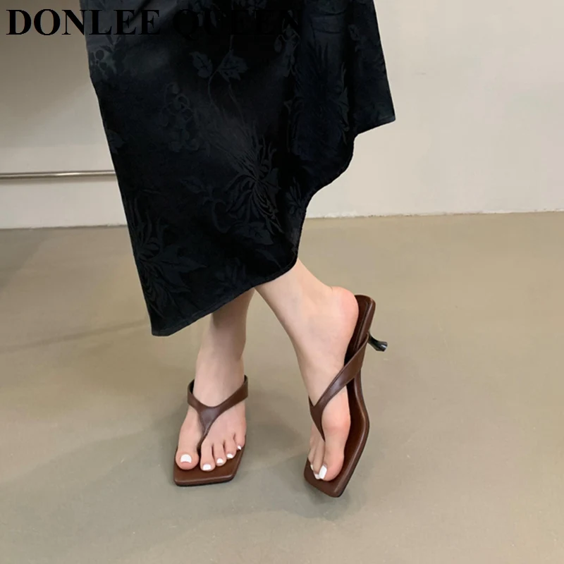 Fashion Brand High Heel Slippers Women Slip On Slide Narrow Band Sandals Shoes Casual Female Slipper Big Size 40 Sandalias Mujer