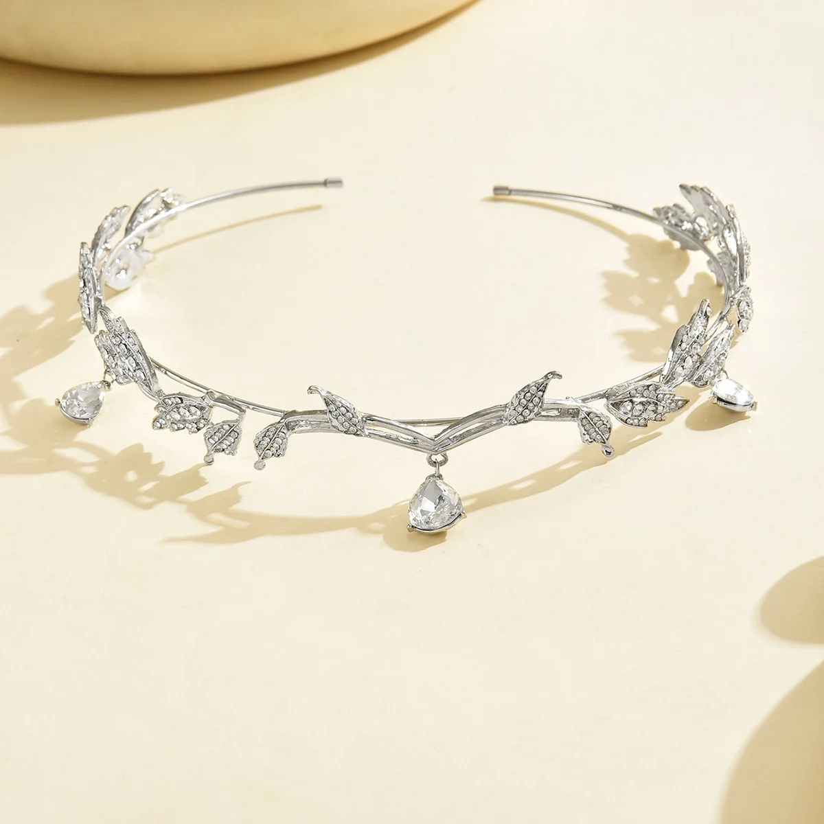 1PC Crown Mori System Leaf Drop Bride Headpiece Super Fairy Runaway Princess Headpiece Headband Choker dual-use hair accessories