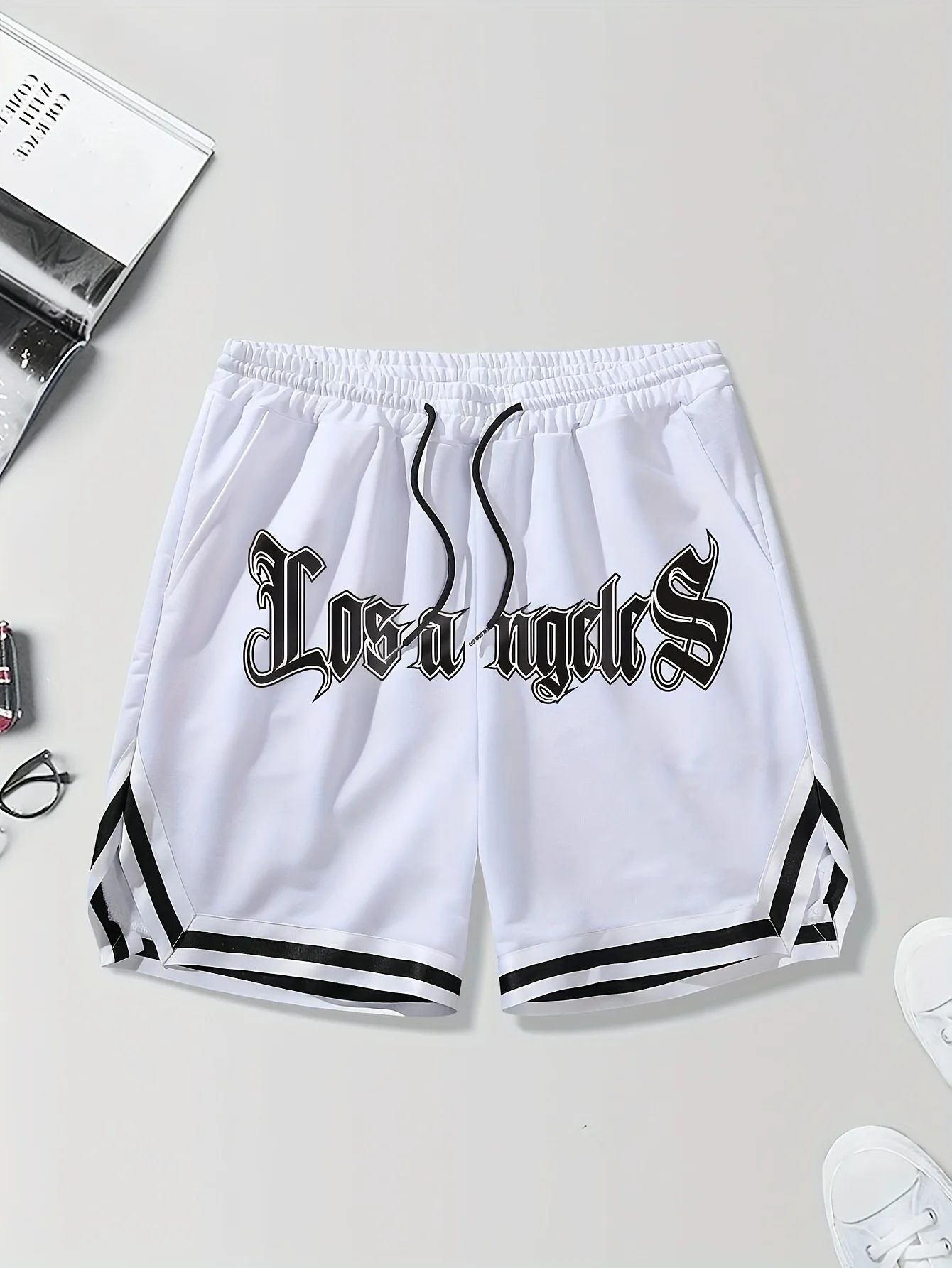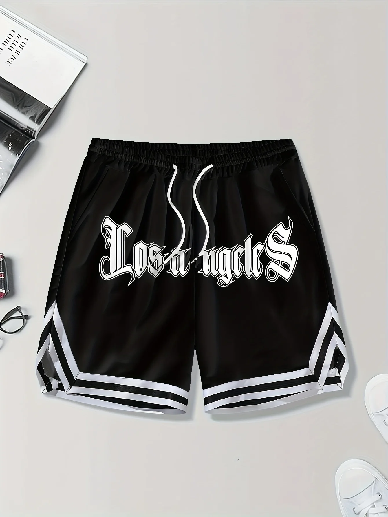 LOS ANGLES Print Men's Loose Large Drawstring Casual Minimalist Shorts Man Pants Casual Shorts Summer New In Men Clothing Thi
