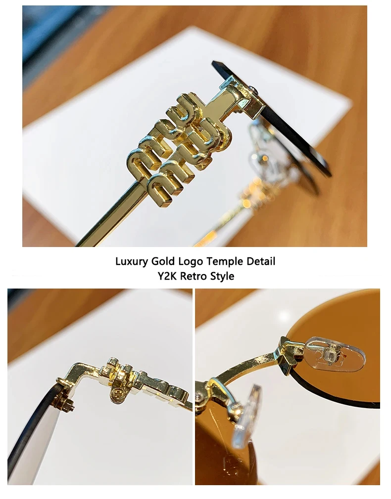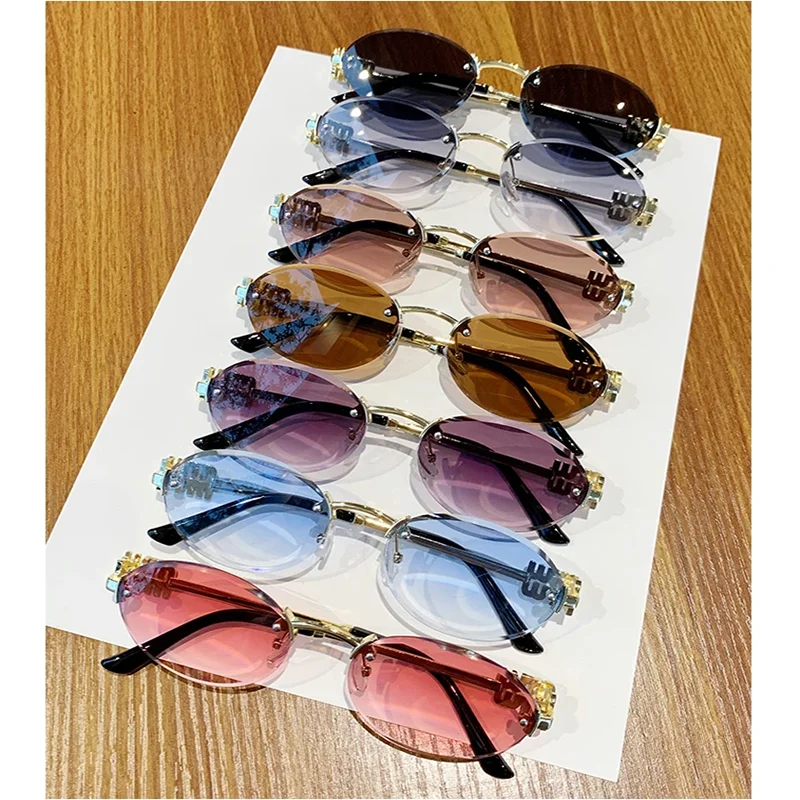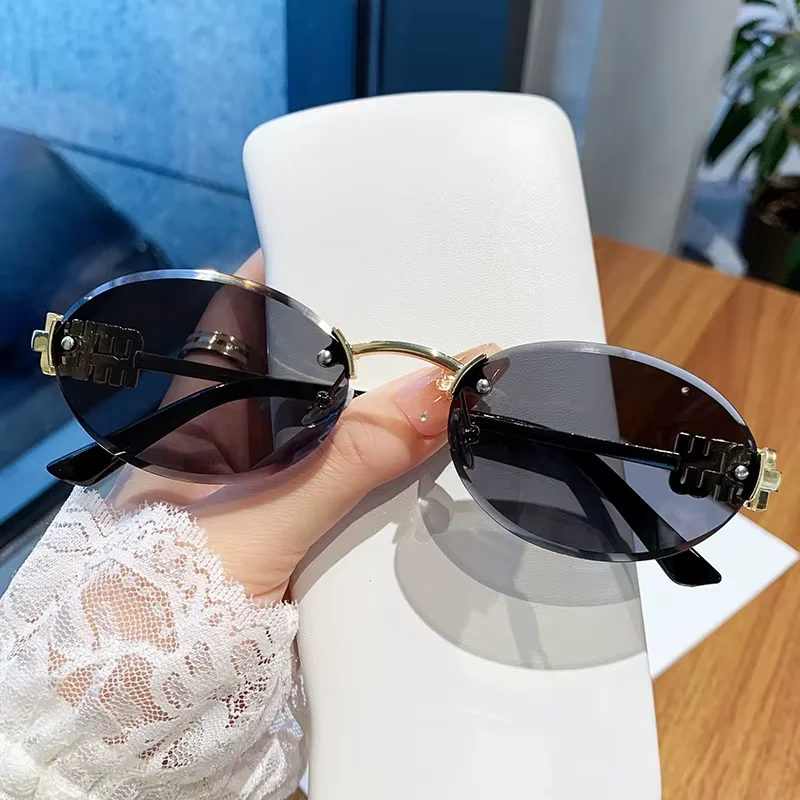 Oval Frame Sunglasses New Rimless Cut Edge Personality Glasses Fashion Design Sense Small Frame Sunglasses 90289