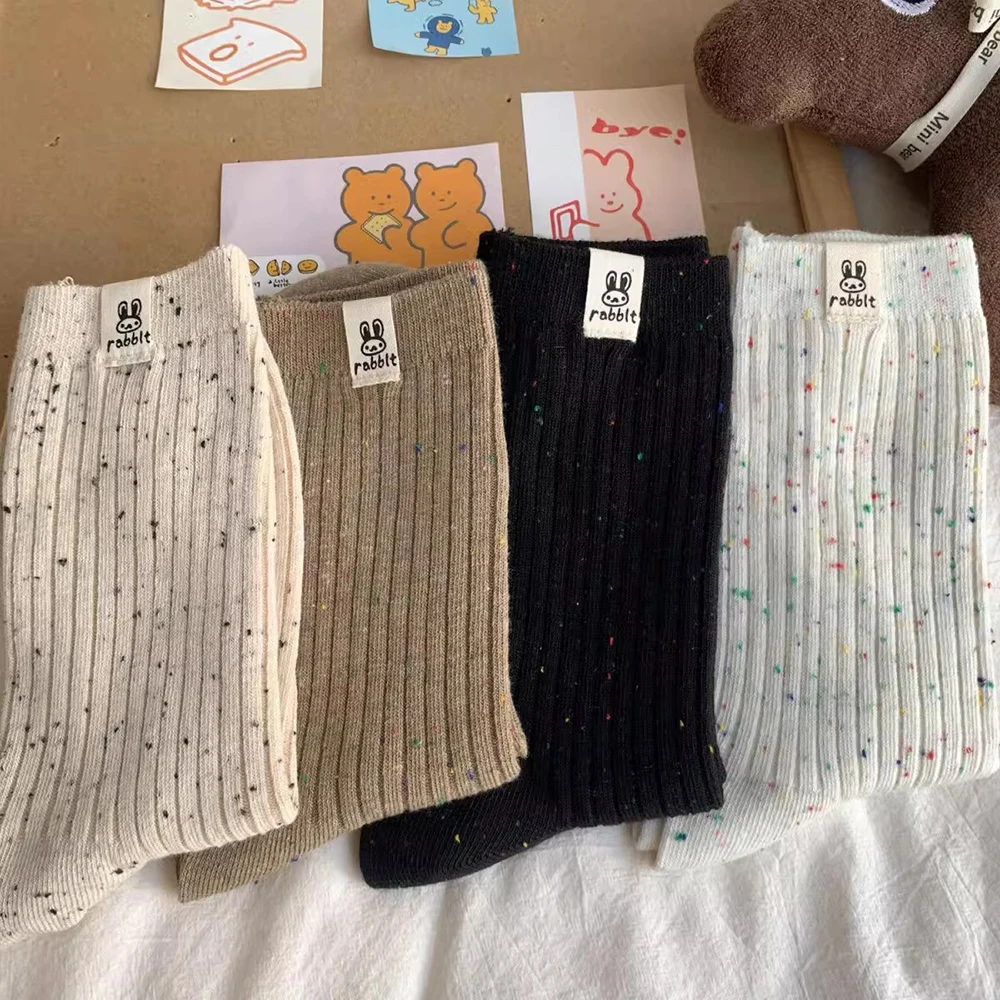 aliexpress , ali , shop , ali shop , online , store , online shop , online store , buy , sell , 4 Pairs Women Cartoon Printed Mid Tube Sock Fashionable Colored Dot Yarn Sweat Absorbing Breathable Soft Comfortable Casual Sock