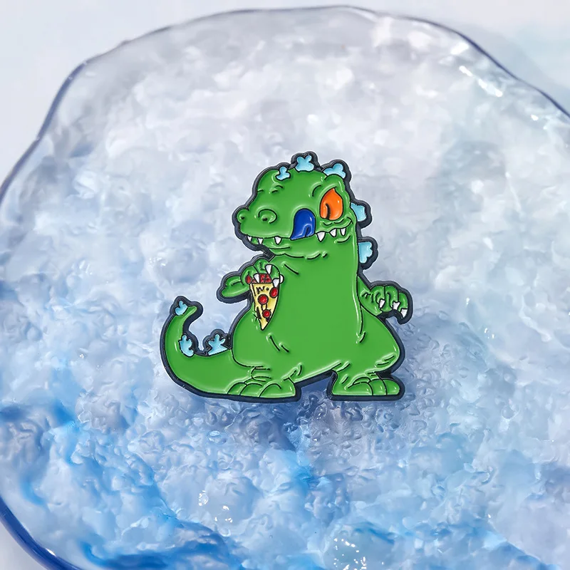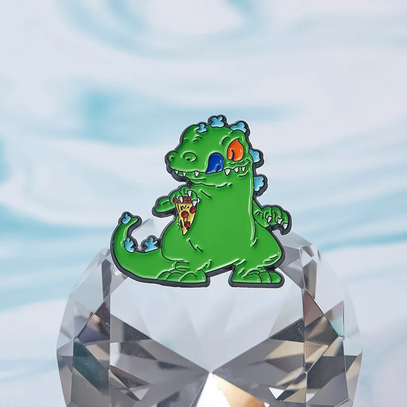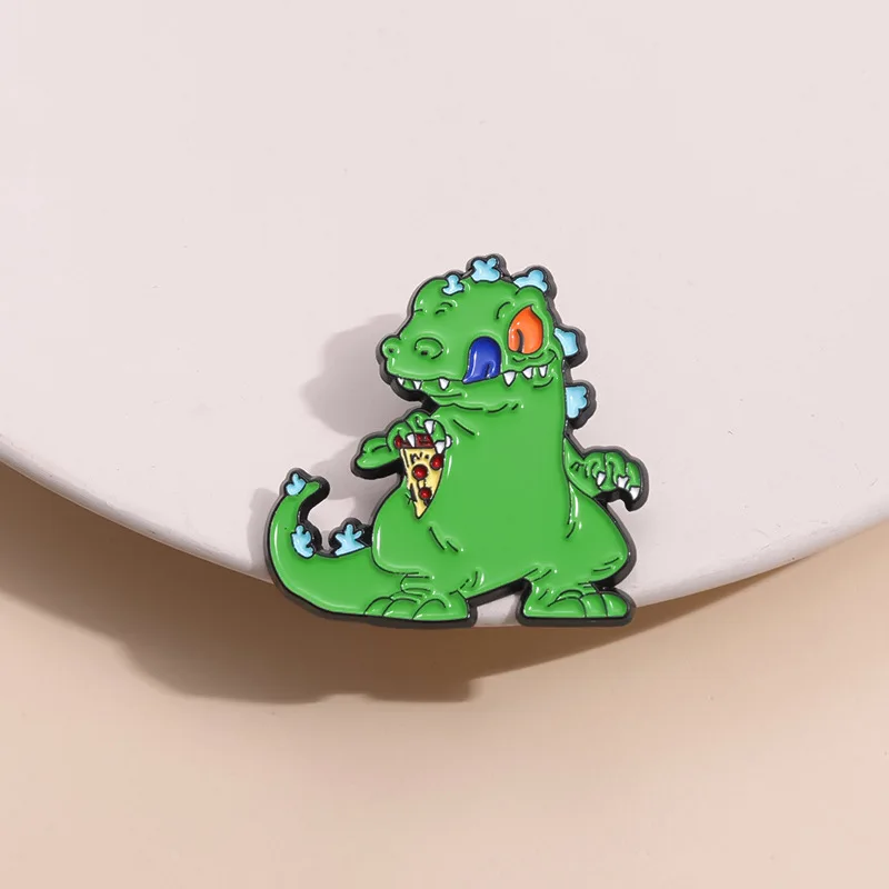 Cartoon Green Reptar Dinosaur Enamel Pin Nostalgia Animation Movies Funny Ainimal Brooch Lapel Badge Jewelry Gift For Friends