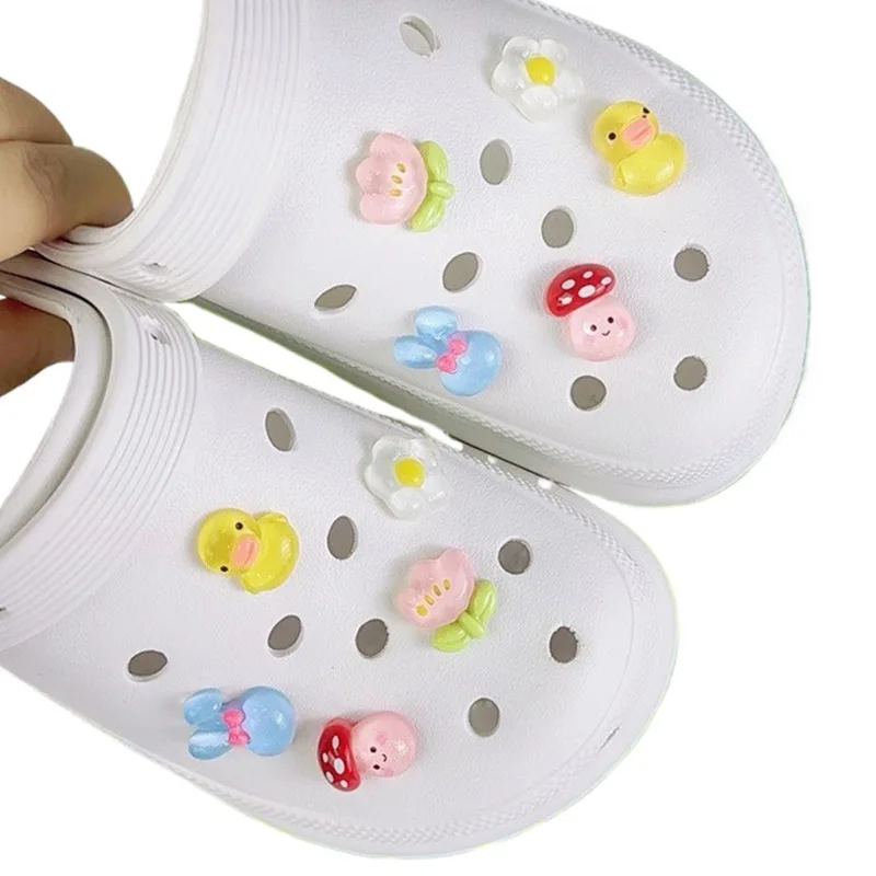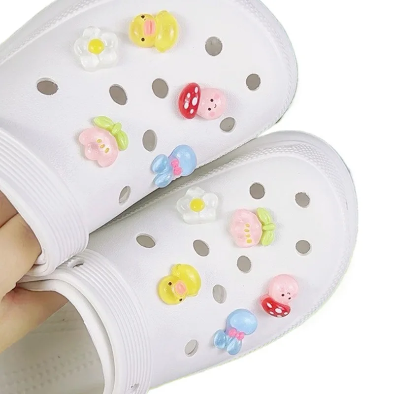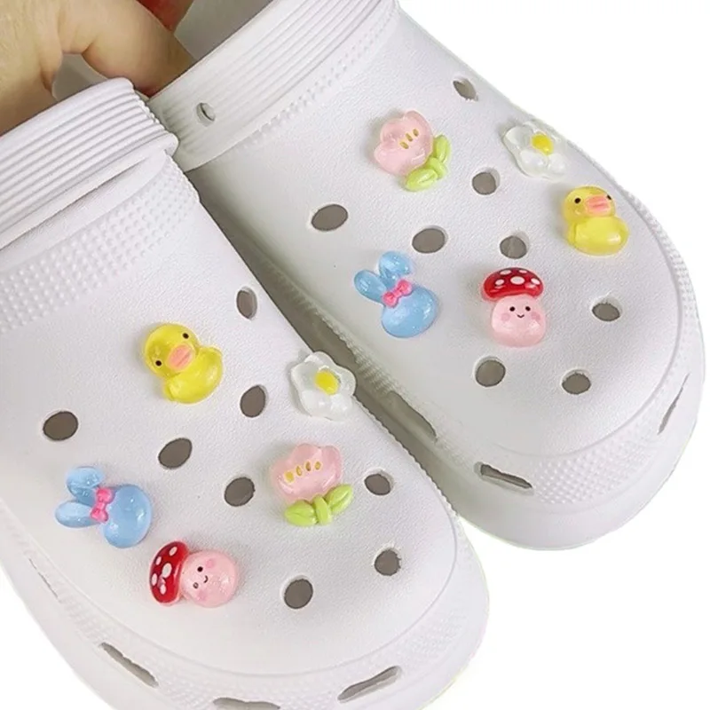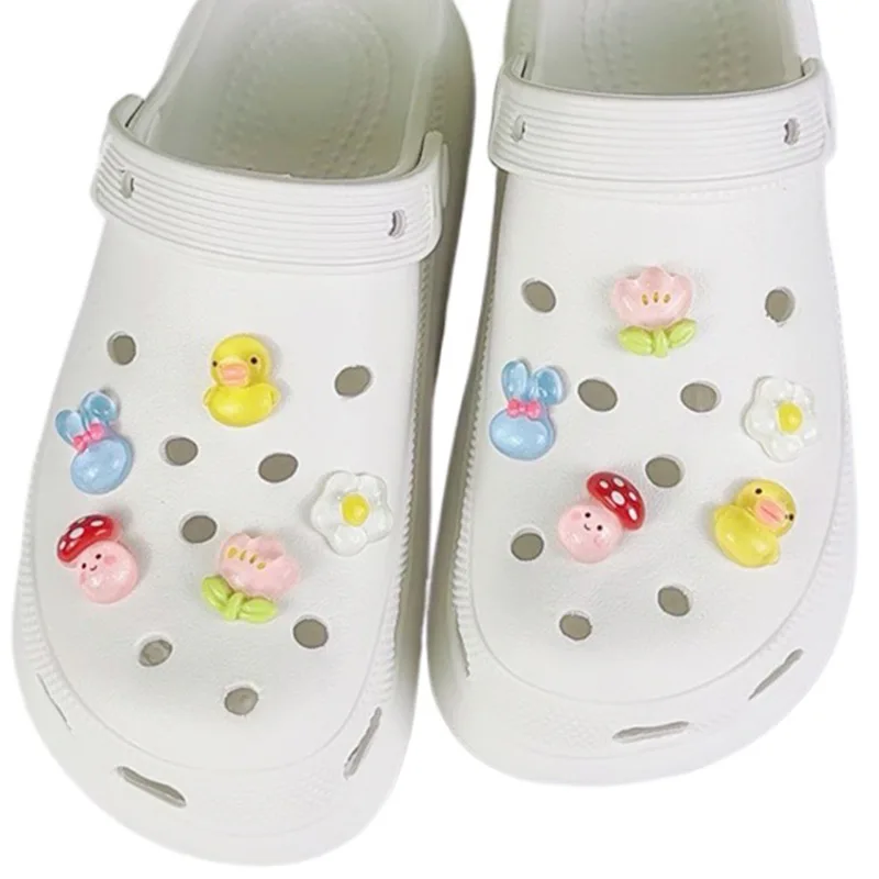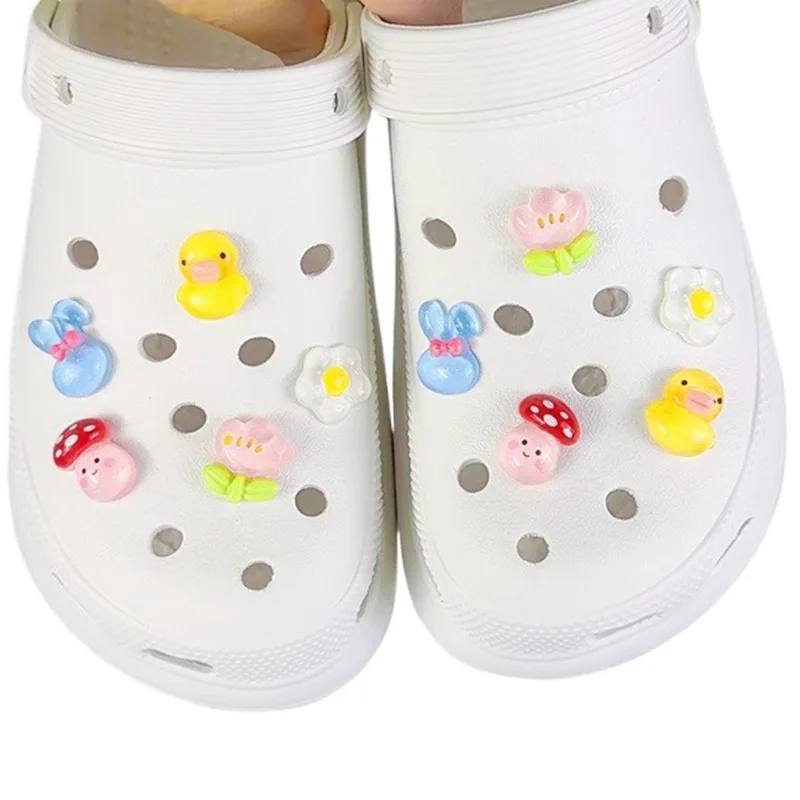 10PCS Fashion Shoe Charms Set Accessories Hole Shoe Buckle Cute Cartoon Yellow Duck Flowers DIY Shoes Decorations Kids Gift