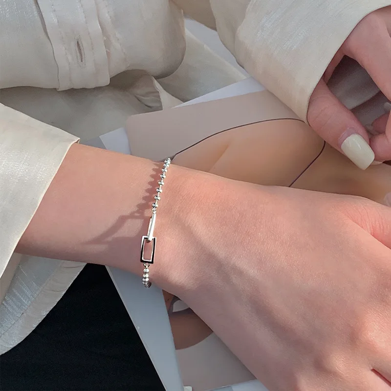 Silver Geometric Square Round Bead Bracelet For Women Personality Temperament Simple Hand Jewelry Party