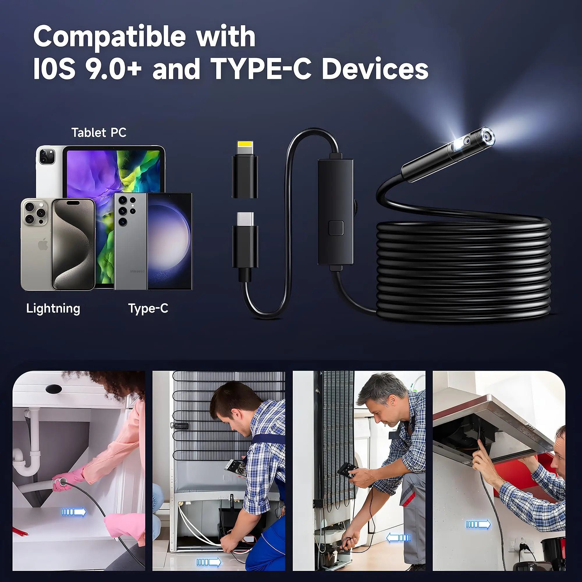 KERUI Single/Dual Lens Endoscope Camera For iPhone iPad IOS & Android Type-c Led Light IP67 Borescope Industry Inspection Camera