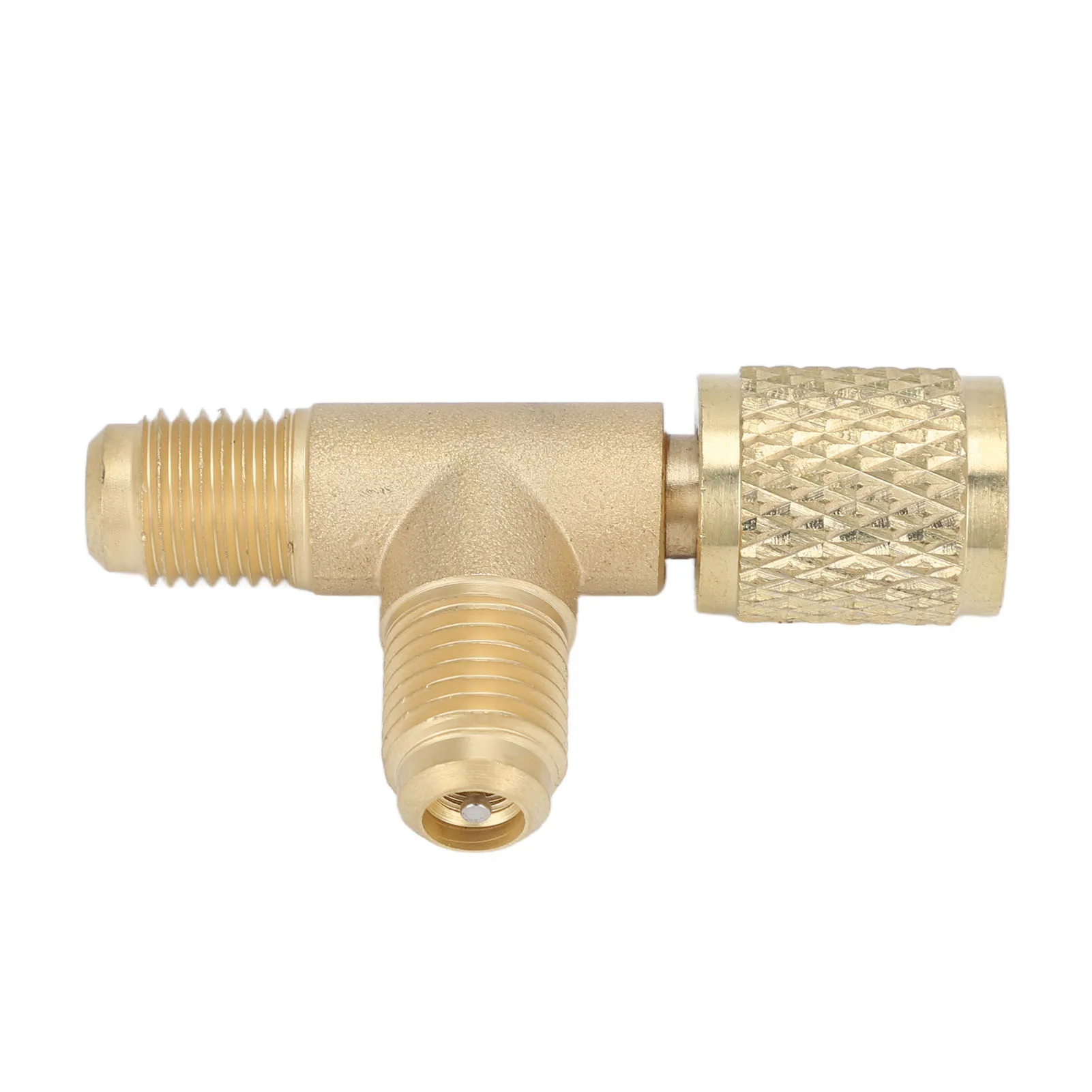 Quick Coupler Tee Adapter with Valve Core Brass 1/4in SAE Sturdy Structure for R22 R12 R134