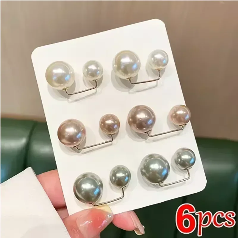 3/6Pcs Double Pearl Brooch Pins Anti-fade Exquisite Elegant Brooches for Women Sweater Cardigan Clip Coat Summer Dress Jewelry