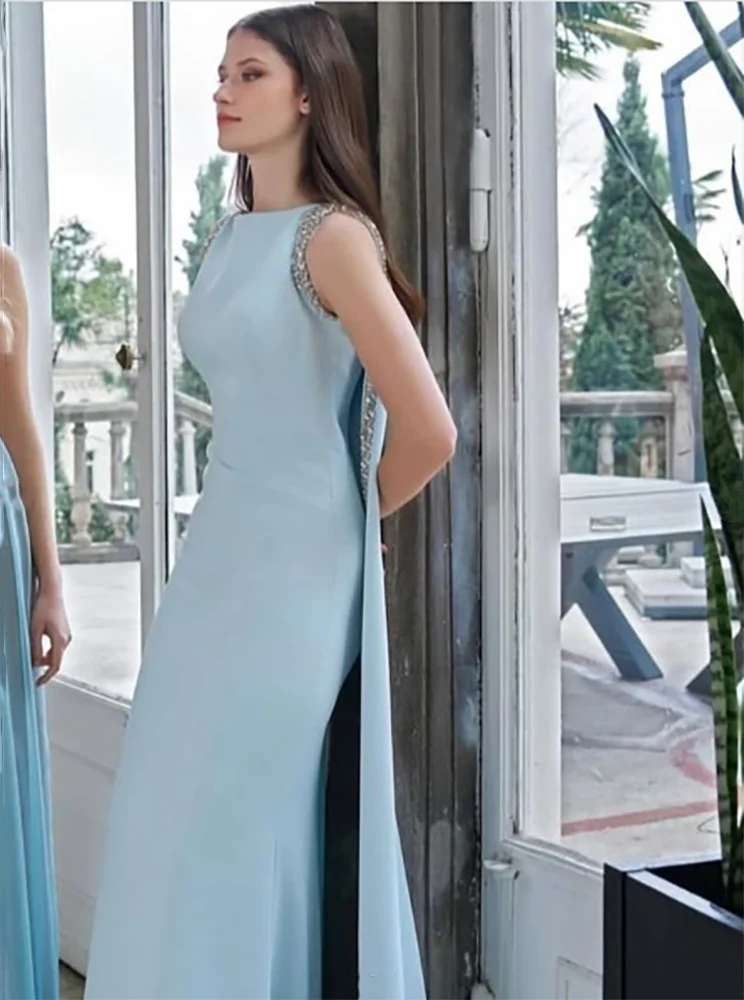 Customized Baby Blue Mermaid Sleeveless Evening Dresses Wedding Prom Dress High Quality Formal Occasion Party Gown for Women