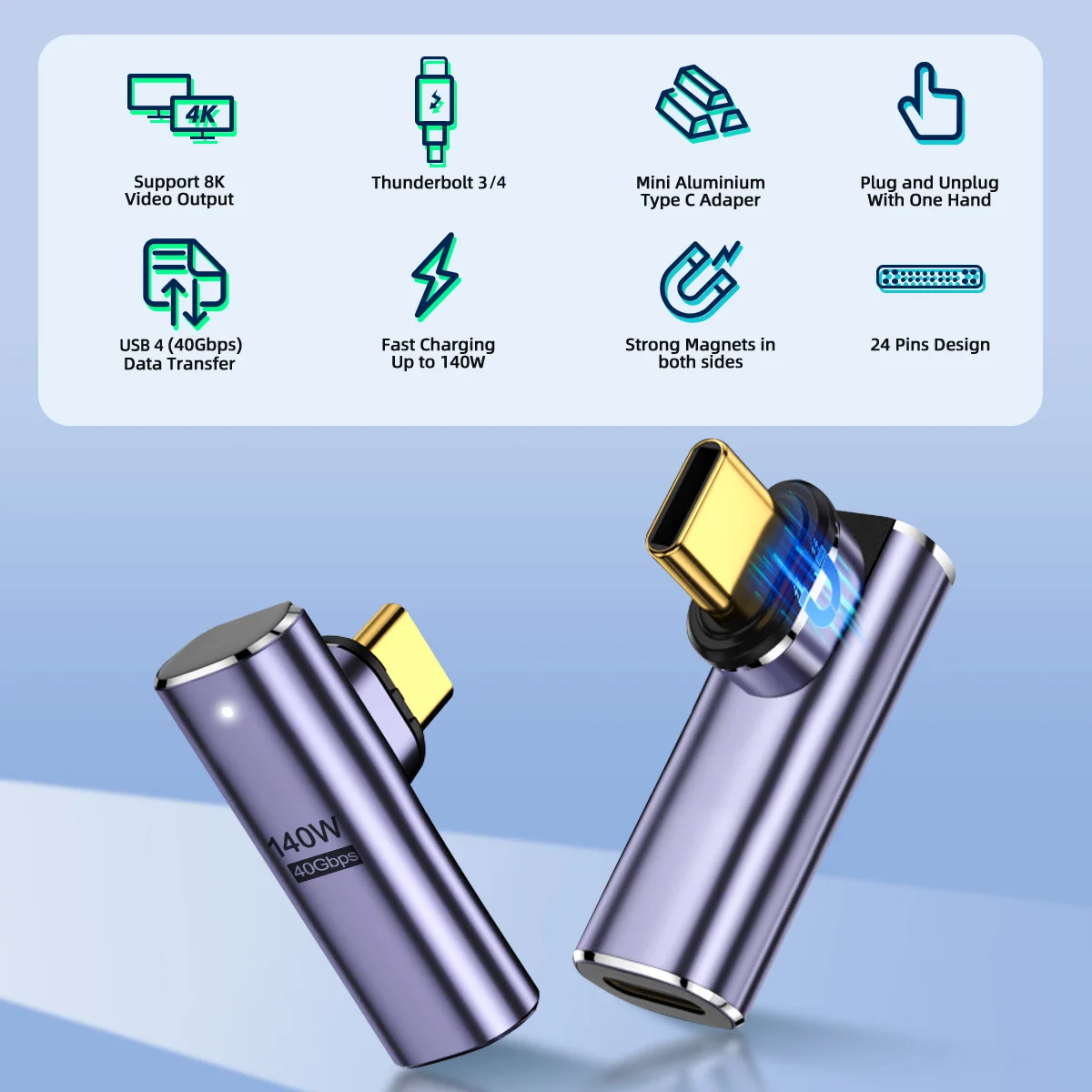 USB4.0 140W USB C Magnetic Adapter Male to Female 40Gbps 8K 60Hz for MacBook Pro/Air,Tablet,Laptop,Phone and More Type C Device