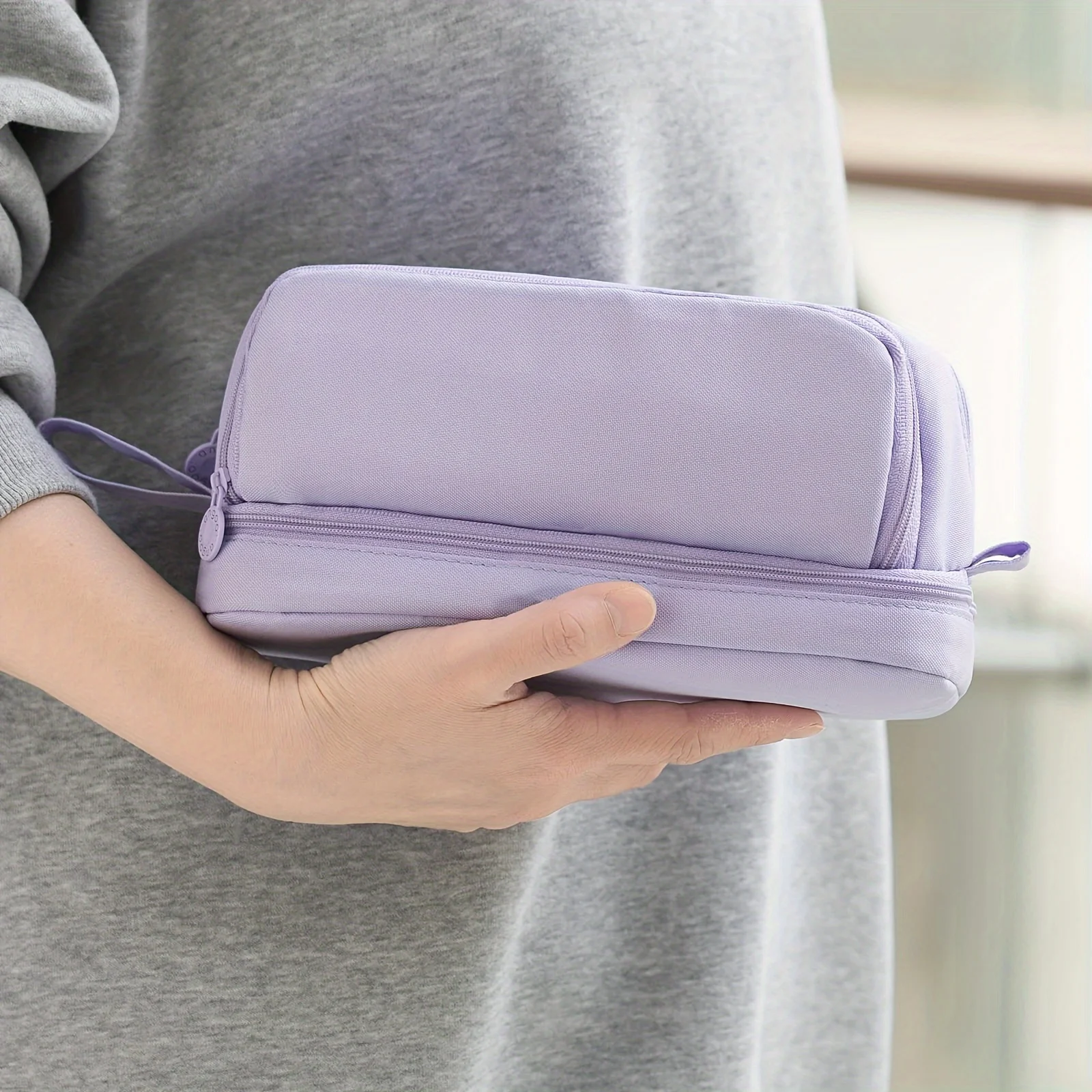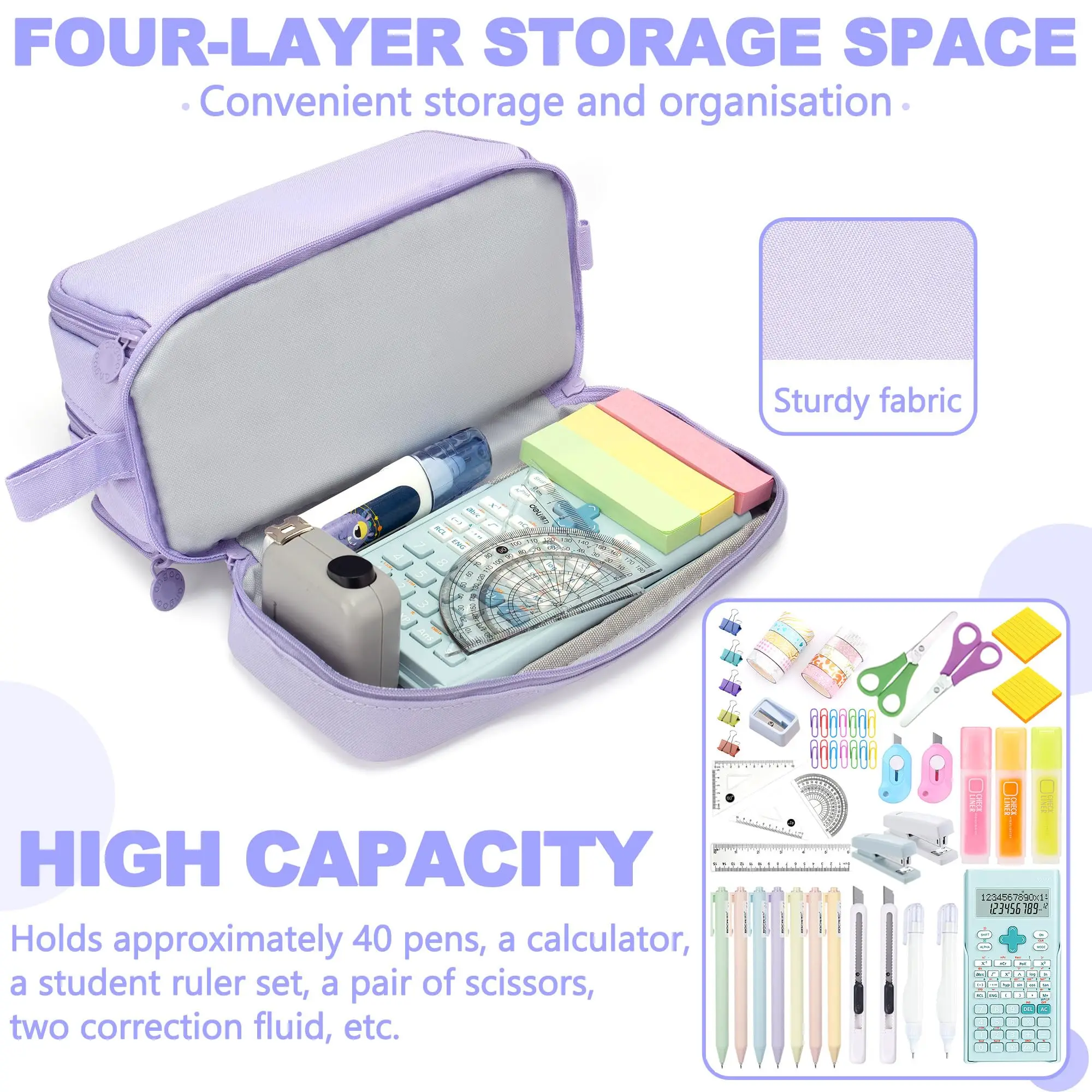 Large-capacity pencil case simple solid color stationery box double-layer multifunctional pencil case student school supplies