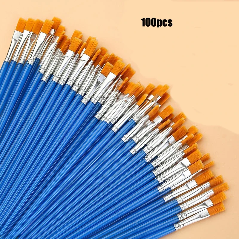 100Pcs Nylon Bristle Plastic Stem Digital Oil Brush Outlining Brush Small Line Brush Acrylic Paint Children's Oil Brush