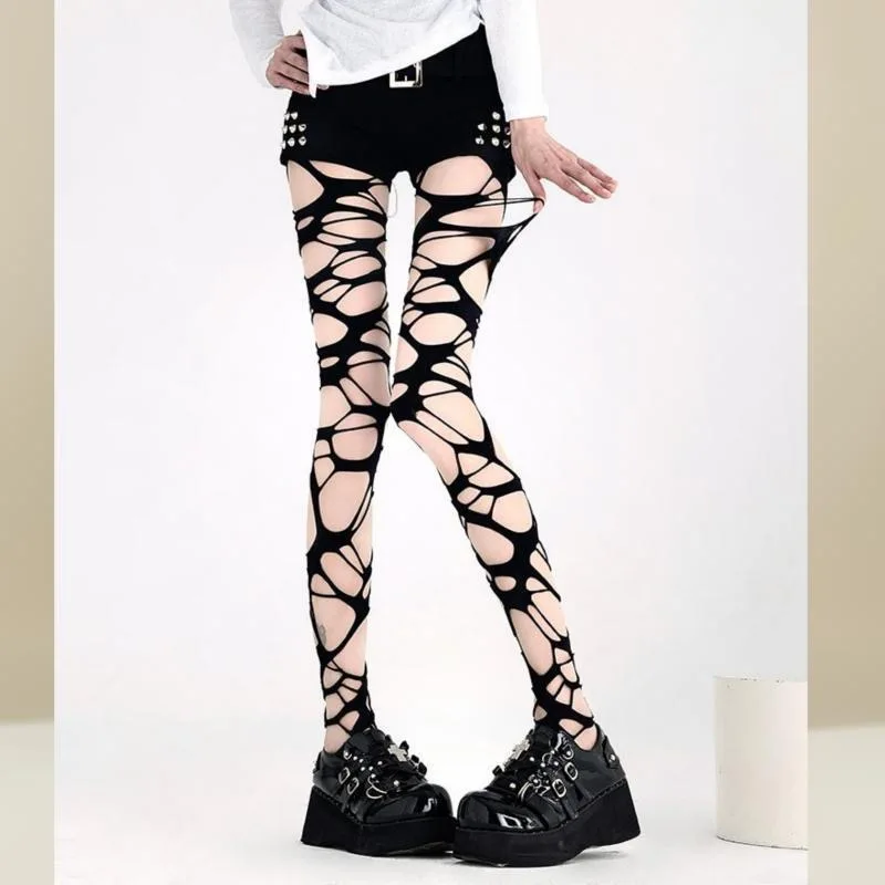 aliexpress , ali , shop , ali shop , online , store , online shop , online store , buy , sell , Ripped Fishnet Tights for Women - Edgy Distressed Punk Stockings, Y2K Grunge Goth Aesthetic, Anti-Slip Stretchy Pantyhose