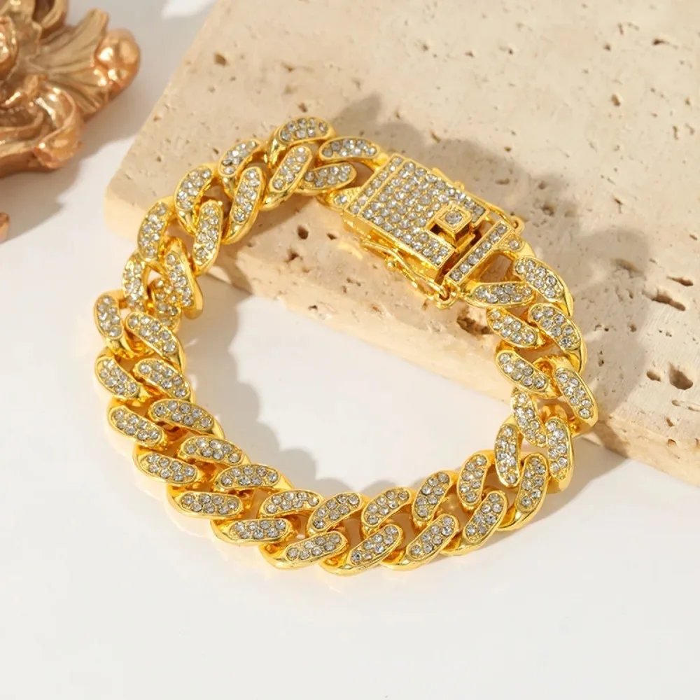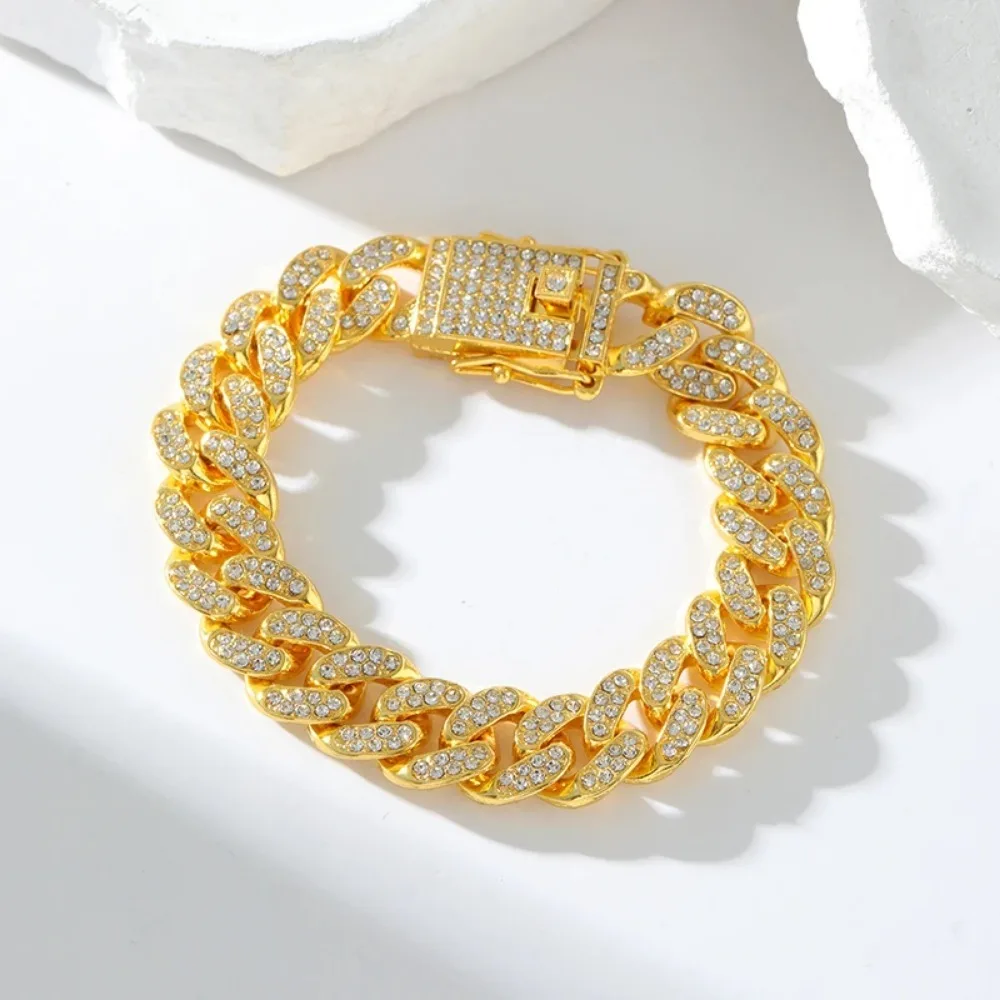 Stainless Steel Gold Color Cuban Chain Bracelet For Women Men Trendy Punk Waterproof Wrist Chain Jewelry Gift Party