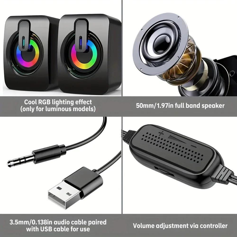 HIFI Stereo PC Sound Box with LED Light USB Wired Computer Speakers Microphone for Desktop - Clear Sound Quality