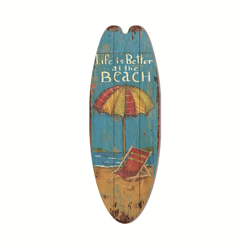 Vintage Wooden Surfboard Hanging Decoration,Surf Themed Room Decoration,Hawaiian Style Retro Beach Surfboard Ornament,with Hook