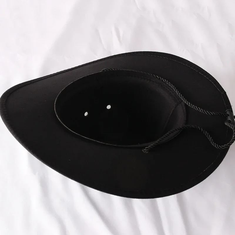 Western Cowboy Hat Vintage Wide Brim, Sun Protection Outdoor Hat for Riding Camping Hiking, Solid Color Jazz Basin Hat