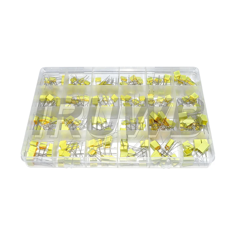 24Values × 10Pcs 100V 102J-105J Polypropylene Safety Plastic Film Capacitors Set 240Pcs Correction Capacitor Assorted Kit