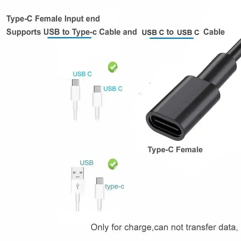 Type C Extension Cable with On/Off Switch USB-C PD to Micro USB / DC 5521 Power Cord Male to Female 5V