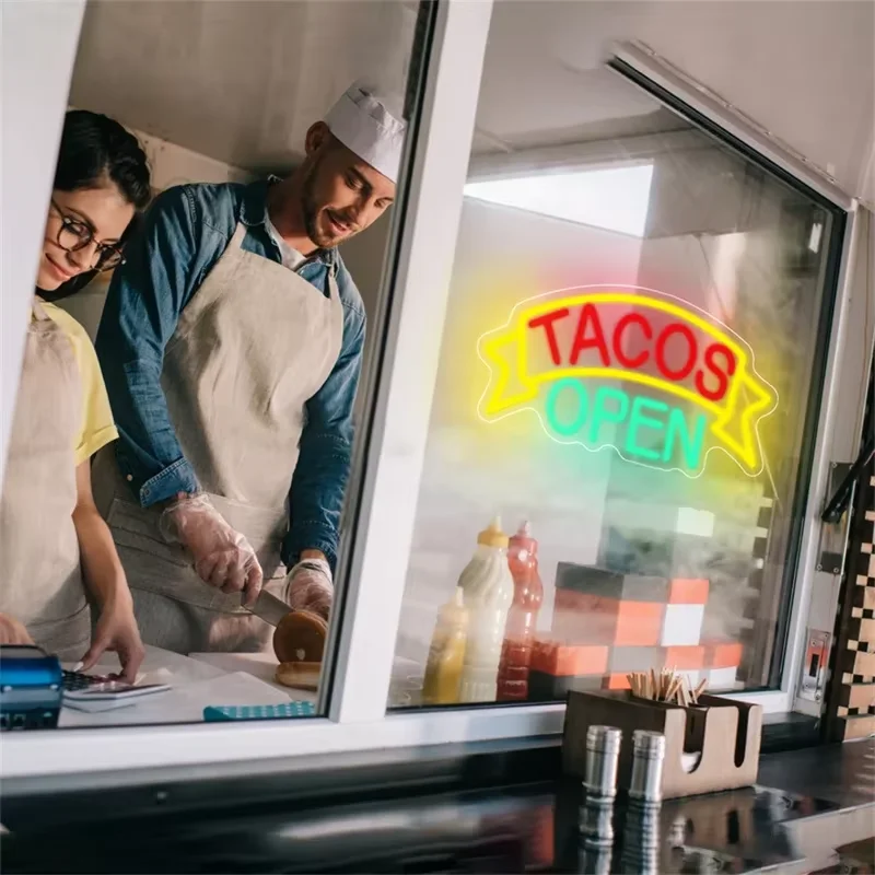 Tacos Open Neon LED Signs Wall Decor Taco Theme Neon Light For Mexican Restaurant Party Food Light Kitchen Decor Business Sign