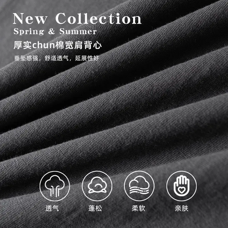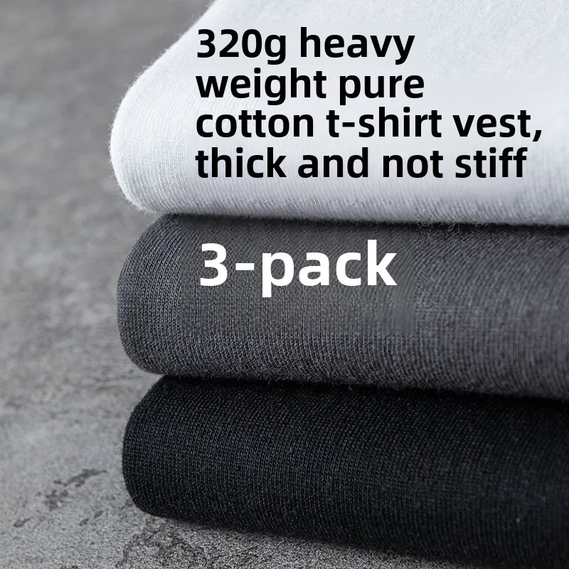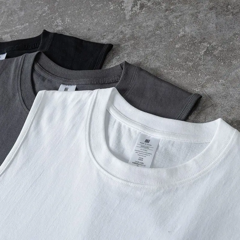 [Pack of 3] 320g heavy cotton sleeveless T-shirt men's and women's solid color loose American casual bottoming shirt summer vest