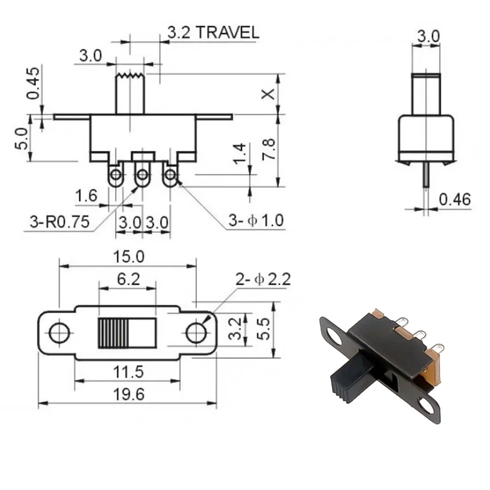 20PCS/Lot 50V 0.3A SS12F15 Mini Size Black SPDT Slide Switch for DIY Power Electronic Projects G6 1P2T Toggle Switch Handle 6mm