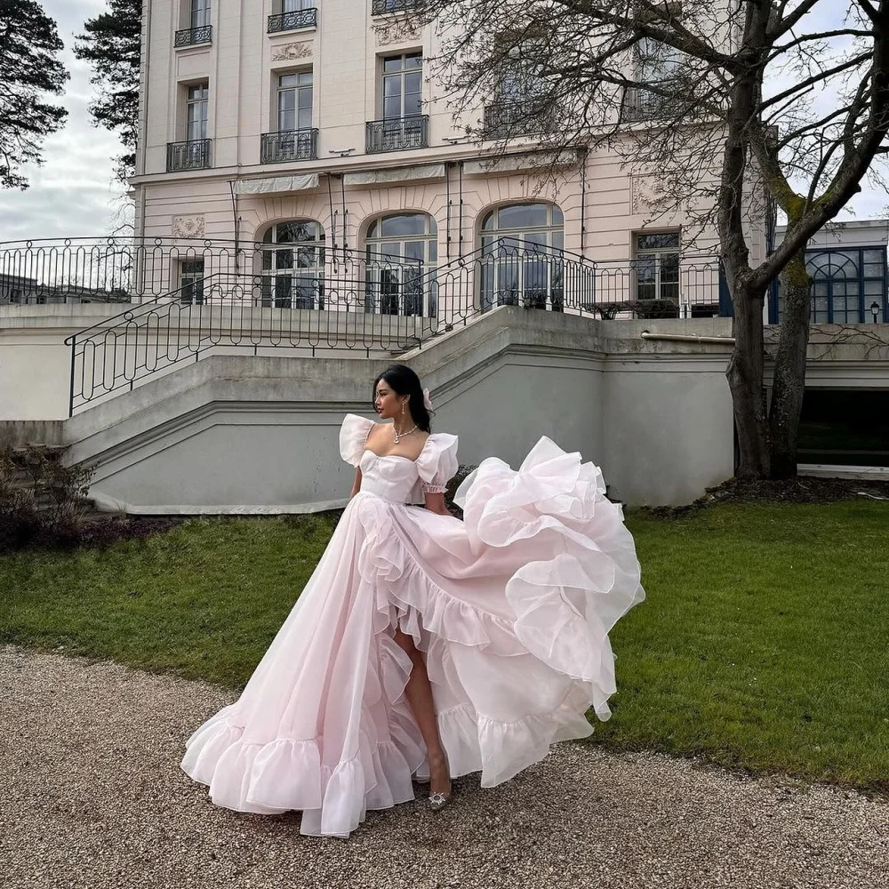 Amanda Customized Pink Strapless Square Collar Prom Dresses A-line Organza vestidos de noche Floor-Length Formal Evening 2025