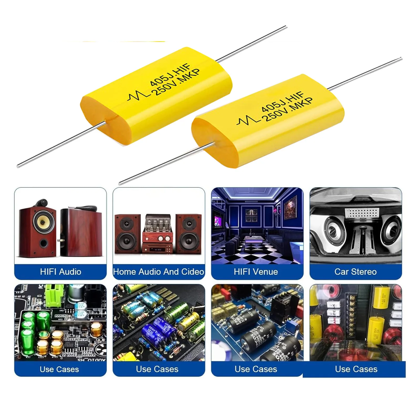 5PCS Film Capacitor Audio 250V DC Round Axial Lead Type Polypropylene Capacitors Yellow Frequency Dividing 1UF 1.5UF 1.8UF 2.2UF