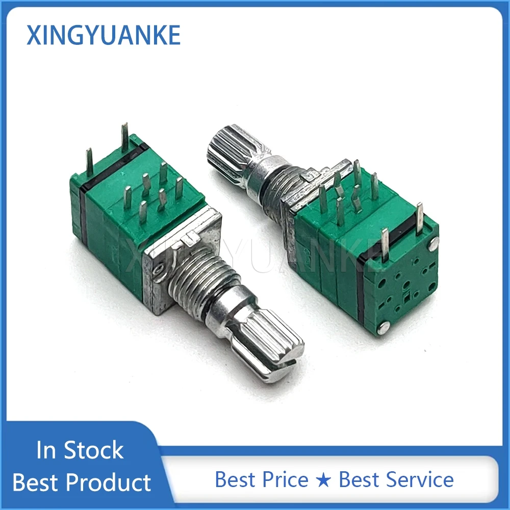 2PCS RK097 Type Dual 8-Pin B10K B20K B50K B100K With Push Switch Volume Adjustment Rotary Potentiometer Flower Shaft Length 15MM