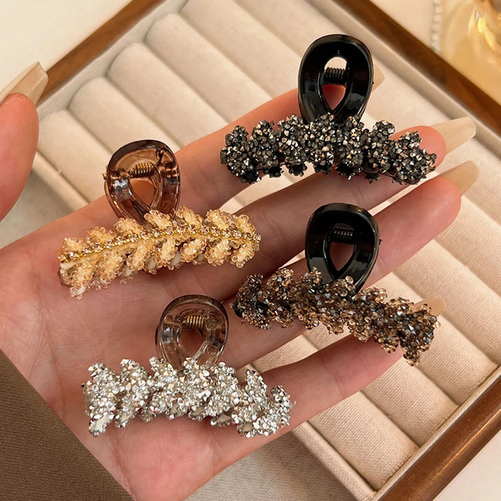 aliexpress , ali , shop , ali shop , online , store , online shop , online store , buy , sell , Rhinestones Leaf Shaped Hair Claw Small Size Crystal Wheat Shark Jaw Clamp For Strong Hold Bun Women Girls Daily Use Headwear