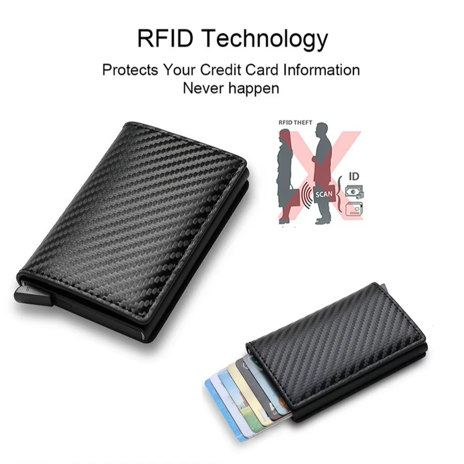 Anti Rfid Carbon Fiber ID Credit Card Holder Men Wallets Mini Automatic Pop up Bank Cardholder Case Minimalist Vallet Choice