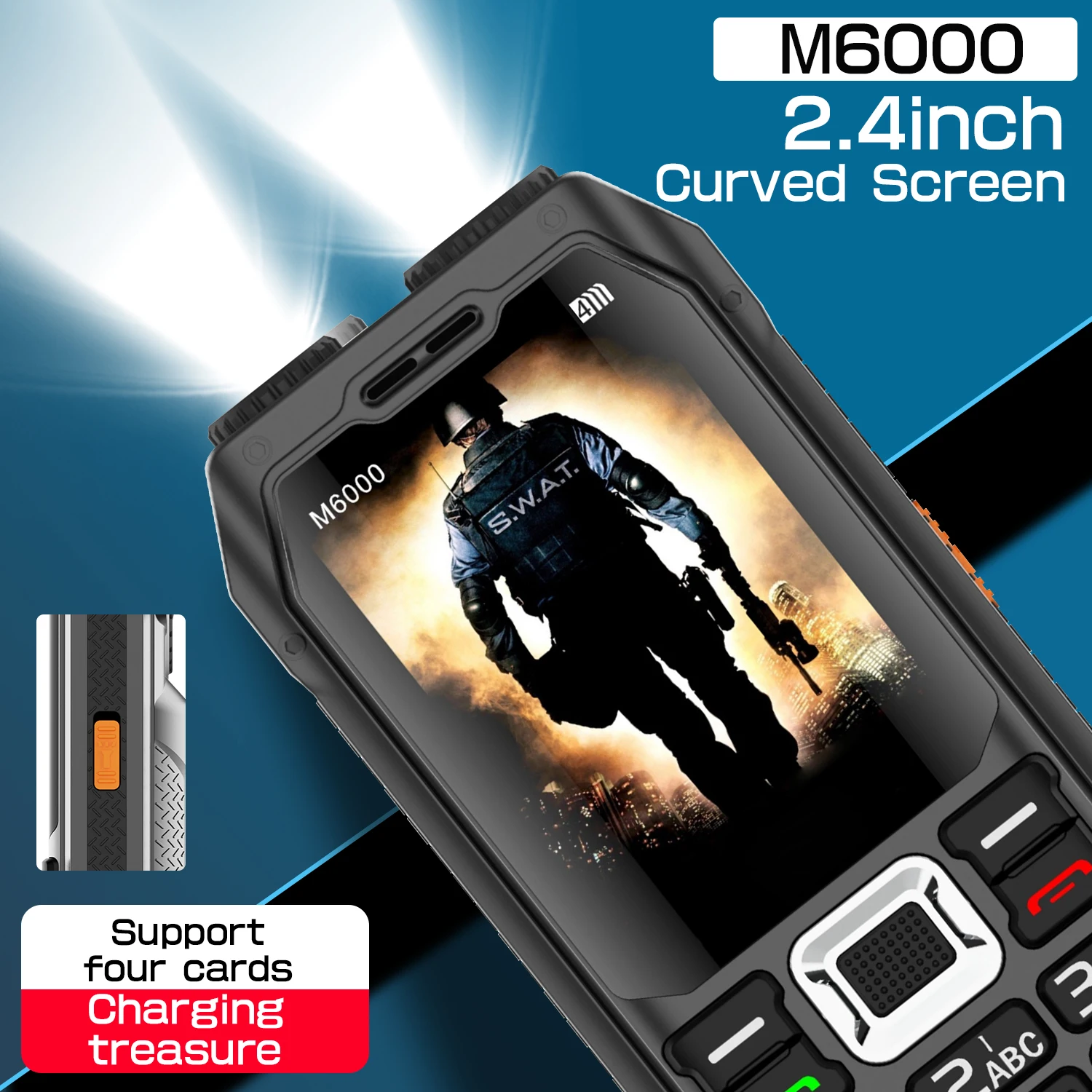 M6000 Ultra Long Standby Durable Mobile Phone GSM 2G Network 4 SIM Card 2.4-inch Large Keyboard Elderly Phone