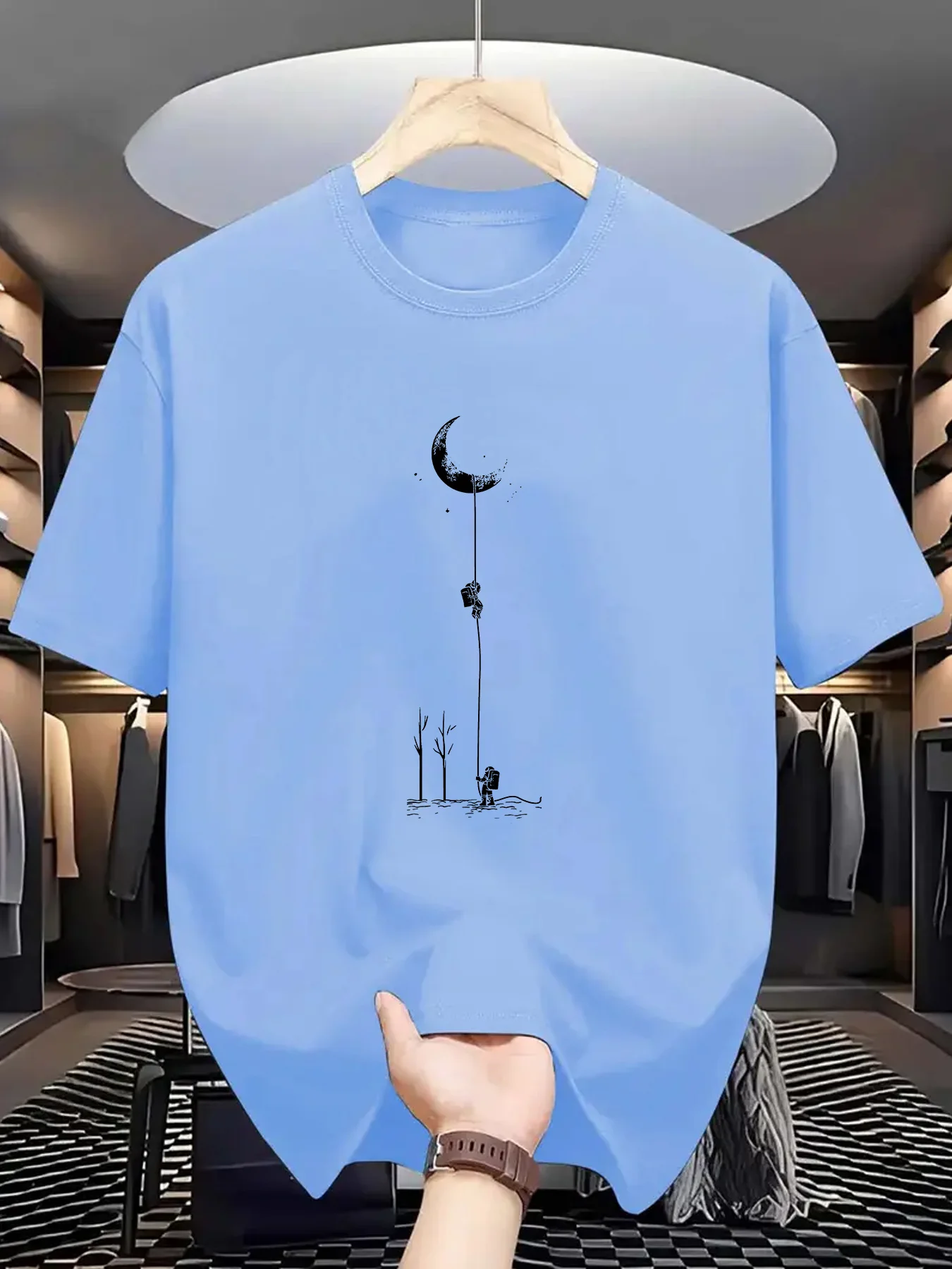 ALI shop - search results ... ... Summer men's 100% pure cotton casual loose fit plus size moon landing pattern printed round neck short sleeved T-shirt top ::: 2021 ::: :::