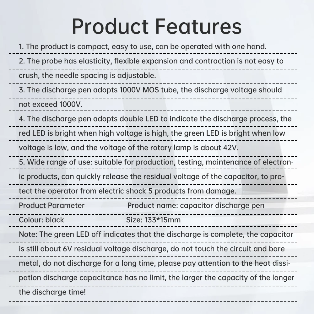 Professional Capacitor Discharge Pen 1000V+ HV – AC/DC Safe Discharger Tool with Non-Polarity Design, Anti Electric Shock