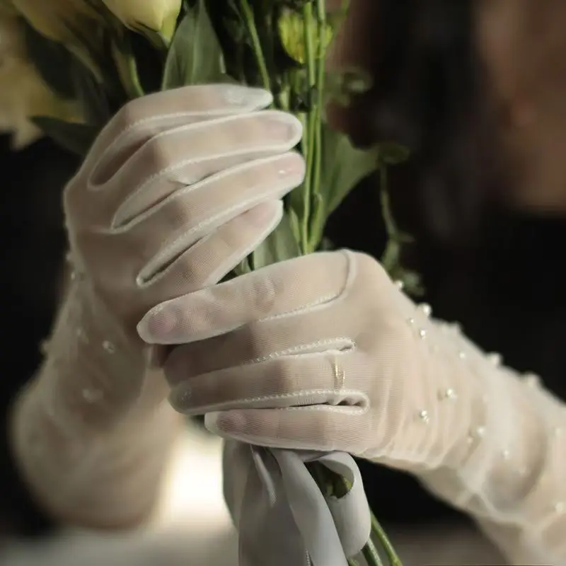 aliexpress , ali , shop , ali shop , online , store , online shop , online store , buy , sell , Elegant Pearl Beaded Long Elbow Bridal Gloves for Wedding Party Finger Tulle Gloves Marriage Accessories