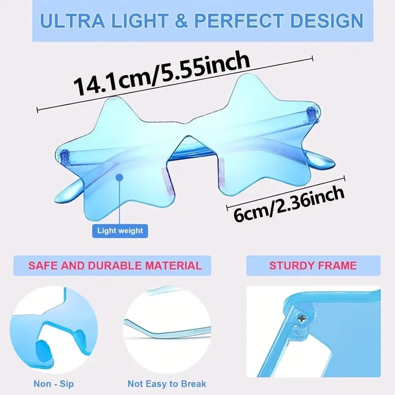 1-9Pcs Star Sunglasses Colorful Star Glasses Transparent Candy Color Sunglass Men Women Photo Props Birthday Party Cosplay