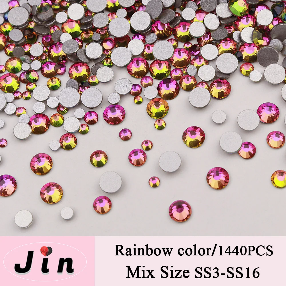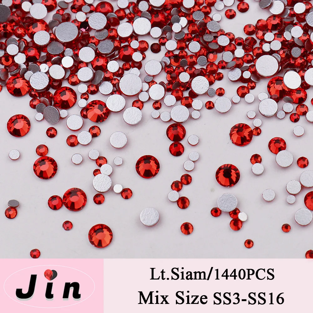 JIN 1440PCS Mix Size Clear Crystal Rhinestones Non-hotfix Gold Red Flatback Glitter Stones Nail Art Crafts DIY Decorations Shoes