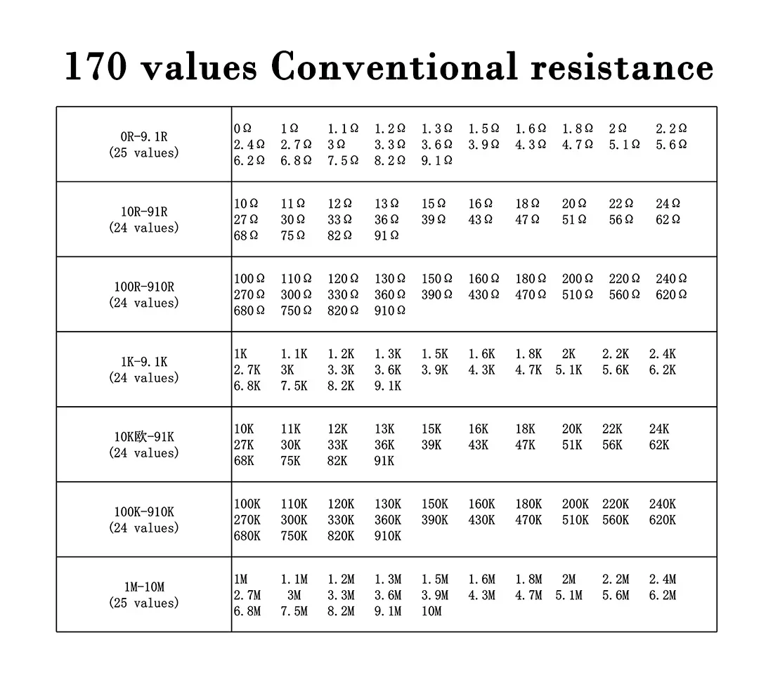 Resistor kit 0201 0402 0603 0805 1206 1210 1812 2512 smd Resistor package 25values*20PCS=500PCS 1% Sample Kit Resisor
