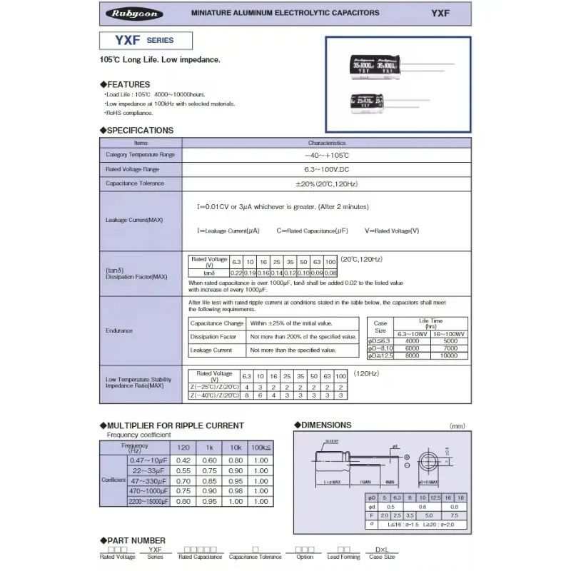 ALI shop - search results ... ... 50V100UF Original Rubycon YXF 8X11.5mm 50YXF100M Long Life Low Impedance Aluminum Electrolytic Capacitor 100uF 50V ::: 2021 ::: :::